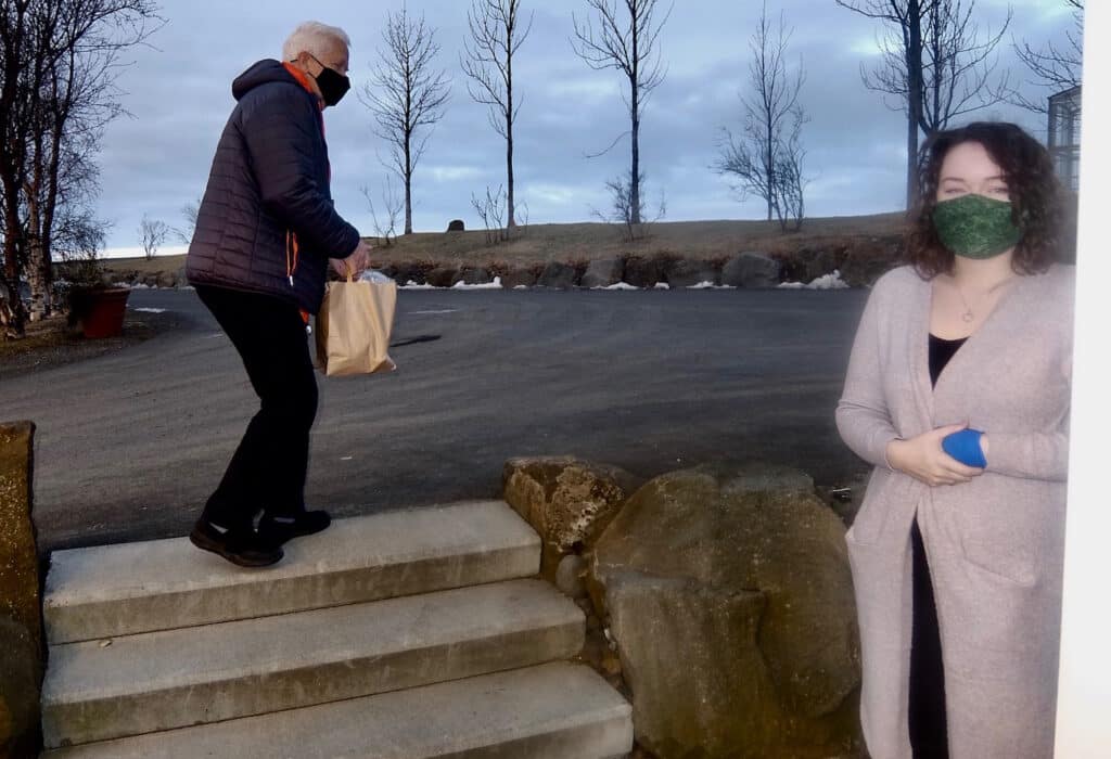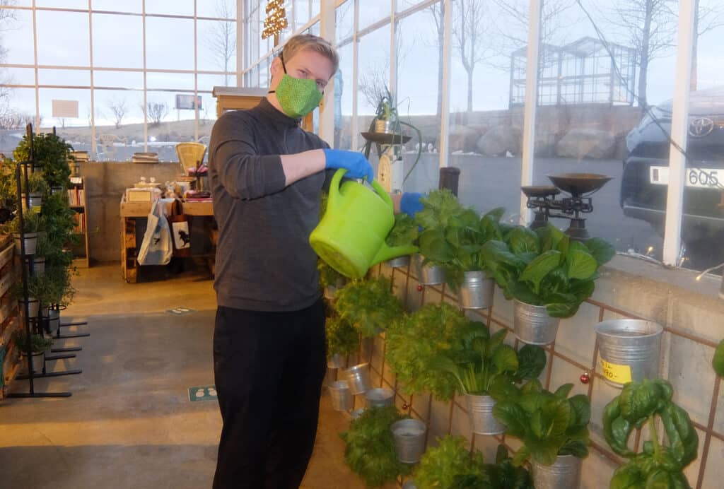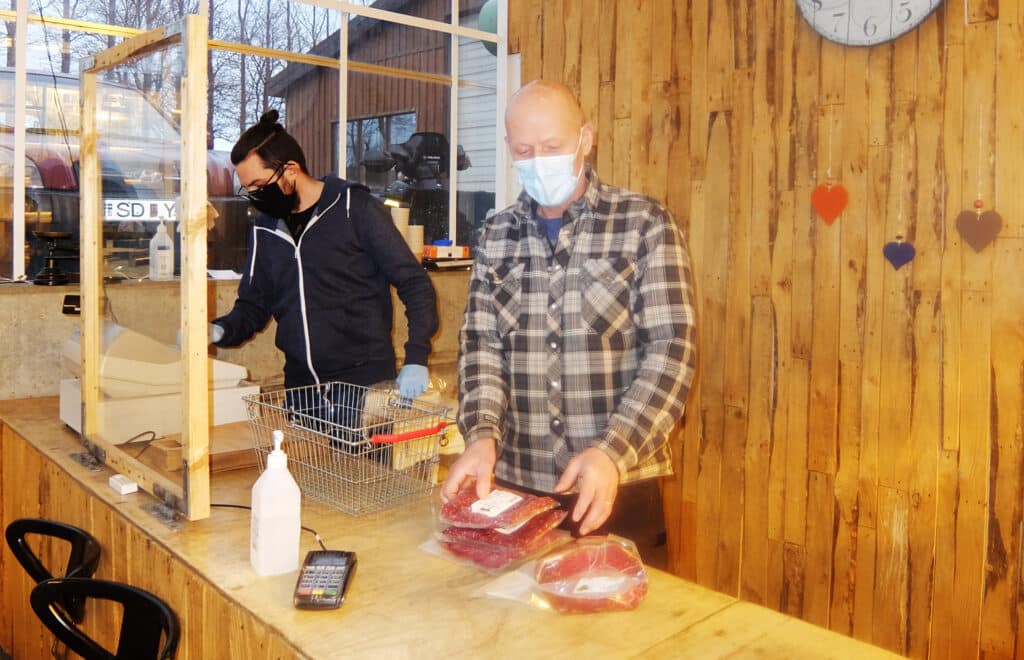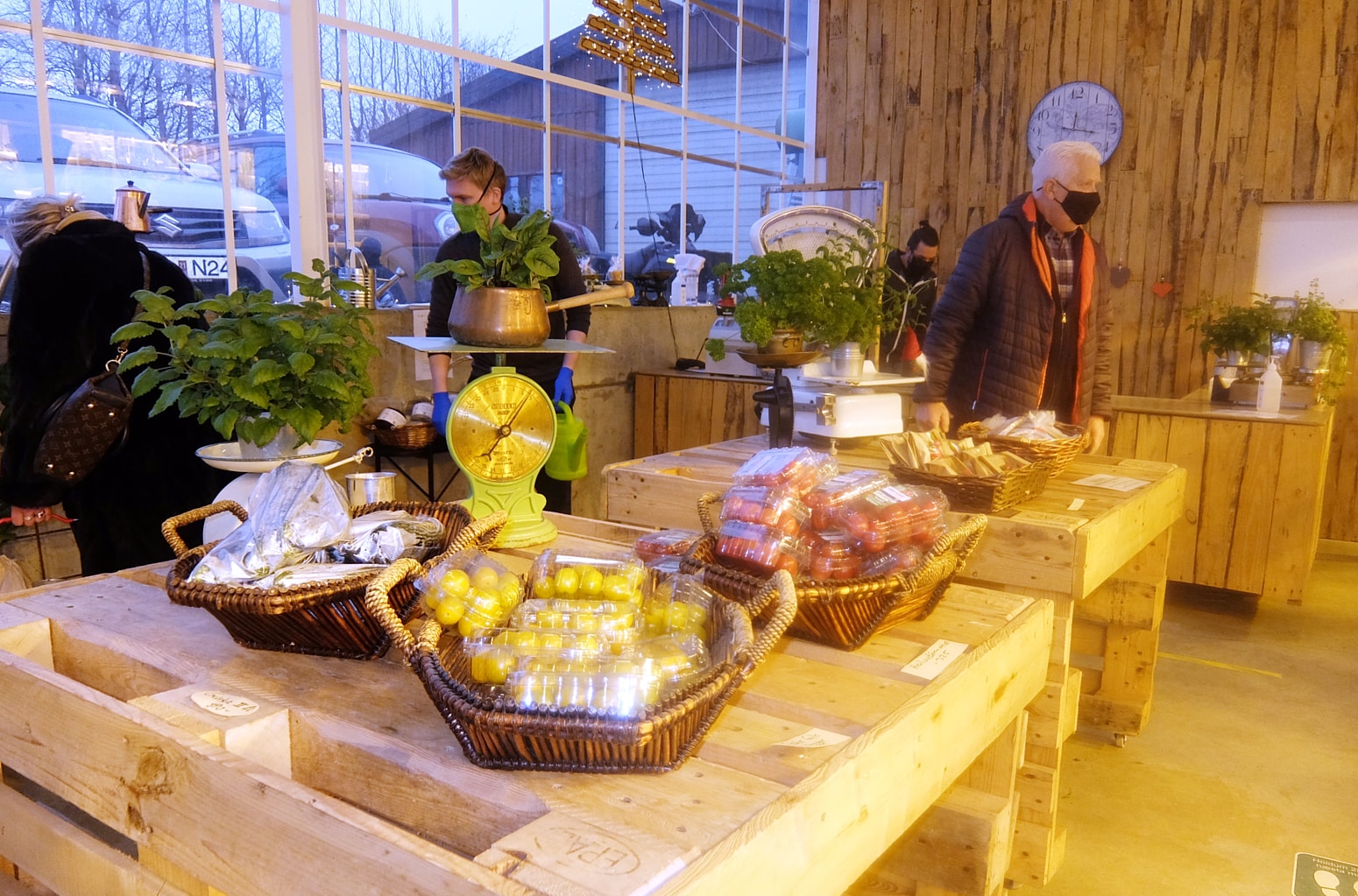 Þegar sunnlenska.is leit við á Melum í hádeginu var strax komið töluvert af viðskiptavinum á svæðið. Kaffi, kakó og piparkökur voru í boði og að sjálfsögðu var öllum sóttvarnarreglum fylgt og talið inn í búðina.