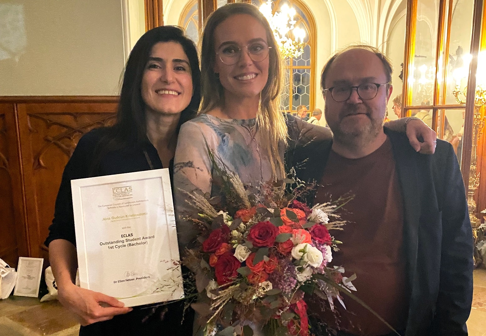Á verðlaunaafhendingu í Lednice kastalanum í Tékklandi hlaut Jóna Guðrún Kristinsdóttir framúrskarandi nemendaverðlaun frá ECLAS í bakkalár námi, 1st Cycle Outstanding Student Award, og er það í fyrsta skipti sem útskrifaður nemandi af námsbraut í landslagsarkitektúr við LBHÍ hlýtur þessa viðurkenningu.