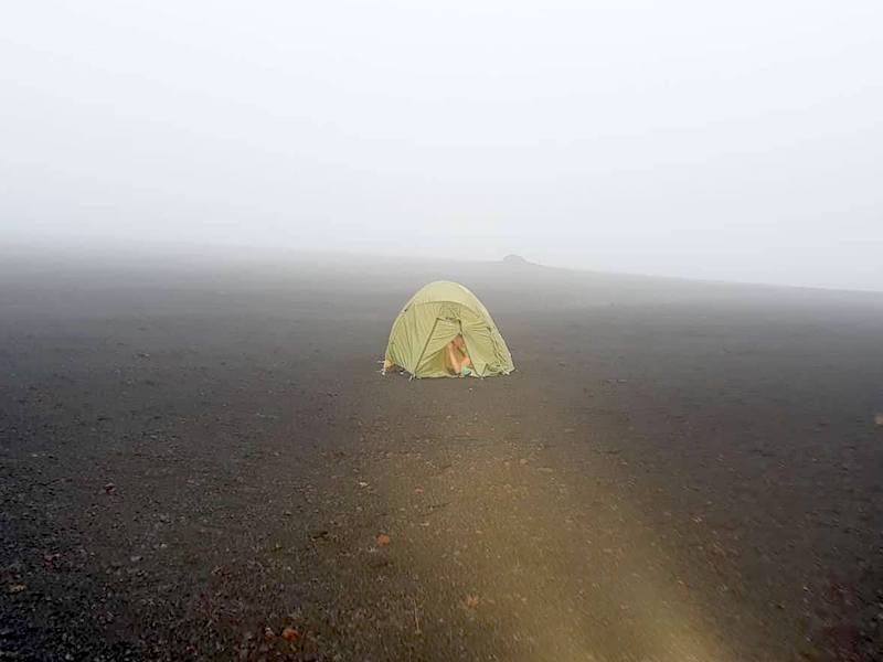 Um klukkan sjö í kvöld barst björgunarsveitum á Suðurlandi útkall vegna ferðalanga á Heklu sem óskuðu eftir aðstoð þar sem þeir voru orðnir blautir og hraktir eftir að tjaldið þeirra hafði fokið.