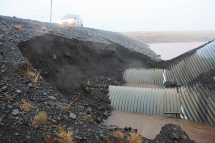 Ánni gengur því illa að finna farveginn undir veginn og breiðir úr sér fyrir ofan hann. Aðeins er farið að grafa úr veginum eins og sjá má á þessum myndum Björgvins Þórs Harðarsonar í Laxárdal.