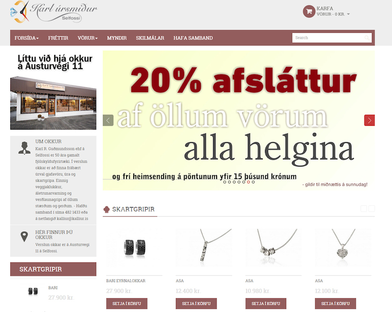 Elsta starfandi verslunin á Selfossi, verslun Karls úrsmiðs, sem fagnaði 50 ára afmæli sínu fyrr í haust, hefur nú opnað netverslun, á slóðinni kalliur.is.