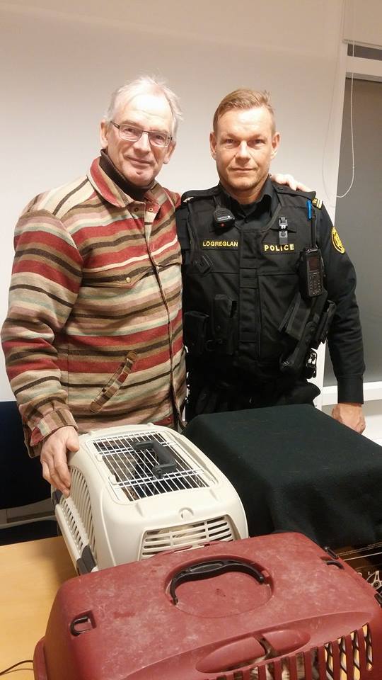 “Löggan í Reykjavík sótti þá í ákveðið hús í kvöld og lét mig vita strax. Ég vil ekki gera fólkinu refsingu, veit ekki einu sinni nöfnin. […] Hettirnir eru svangir og hvekktir, sérstaklega læðurnar en ég má halda á þeim öllum og þau þekktu mig strax,” sagði Ólafur glaður á Facebook þegar hann var búinn að fá Platinum Prince, Ísabellu Sóley og Nátthaga Kysstu Lífið Lukku í hendurnar.