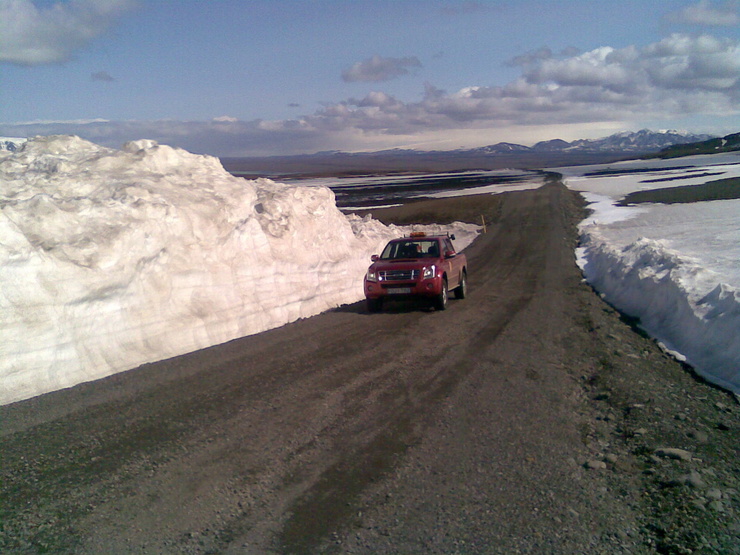 Þrátt fyrir það hefur verið mokaður snjór á fjallvegum í ár og í sumum tilvikum eins og á Kjalvegi nokkuð meira en gert hefur verið síðastliðin ár.