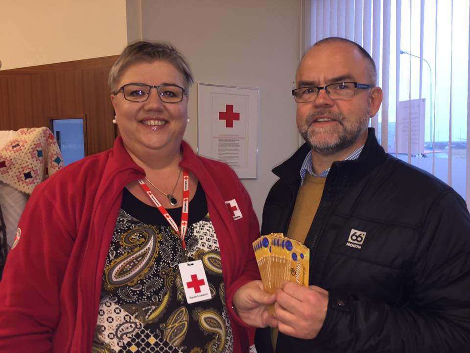 Það var Erla G. Sigurjónsdóttir hjá Árnessýsludeild Rauða krossins sem tók við miðunum fyrir hönd sjóðsins.