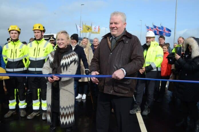 Sigurður Ingi Jóhannsson innviðaráðherra og Bergþóra Þorkelsdóttir, forstjóri Vegagerðarinnar, opnuðu formlega í dag nýjan Suðurlandsveg milli Hveragerðis og Selfoss.