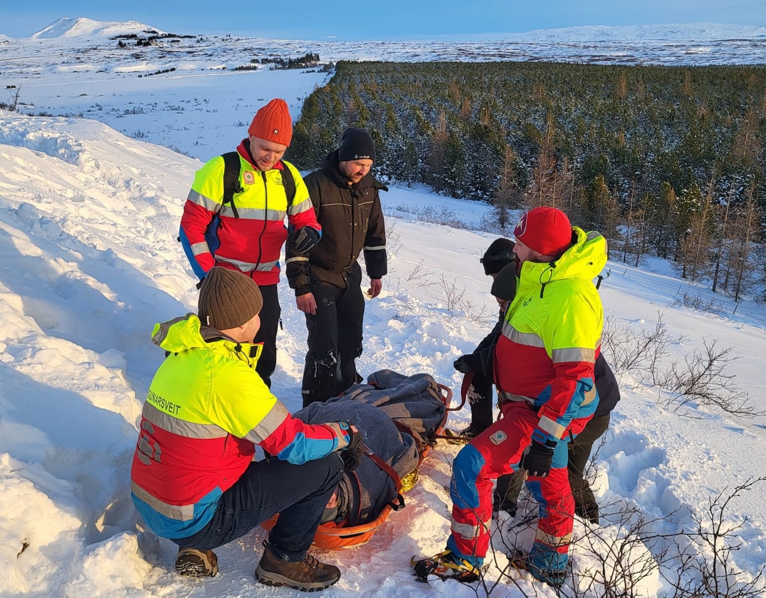 Þrír félagar hjálparsveitarinnar voru staddir í nágrenninu og voru þeir komnir á staðinn á fyrstu fimm mínútunum frá því að útkallið barst. Þrír aðrir komu svo til viðbótar og var sjúklingurinn borinn frá suðurhlið Kersins um 400 metra leið niður á bílaplan þar sem sjúkrabíll beið.