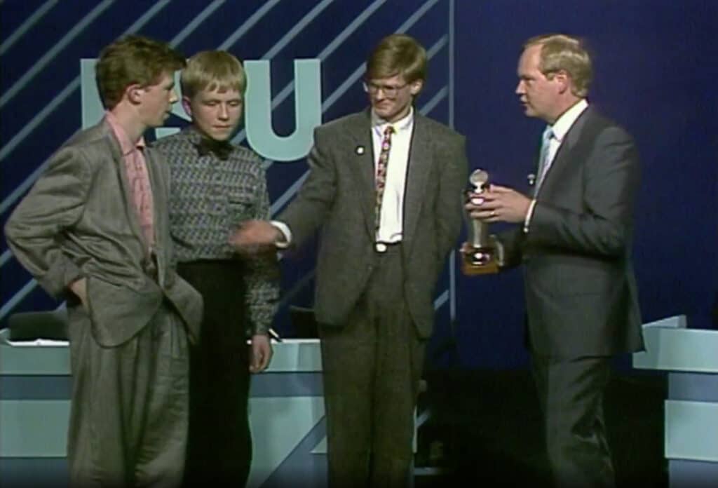 „Við kepptum í sjónvarpssal í gamla sjónvarpshúsinu við Laugaveg og vorum að sjálfsögðu með langbesta klappliðið. Þetta var á hápunkti “eighties” og tískan var eftir því, skærir litir og ég t.d. í bleikri skyrtu í jakka með herðapúðum. Úrslitakvöldið var ógleymanlegt – sigur, að samgleðjast með vinum og svo var partý á eftir! Við fórum meðal annars í Klúbbinn sáluga, fengum til þess sérstaka undanþágu vegna ungs aldurs…“ bætir Sveinn við brosandi.