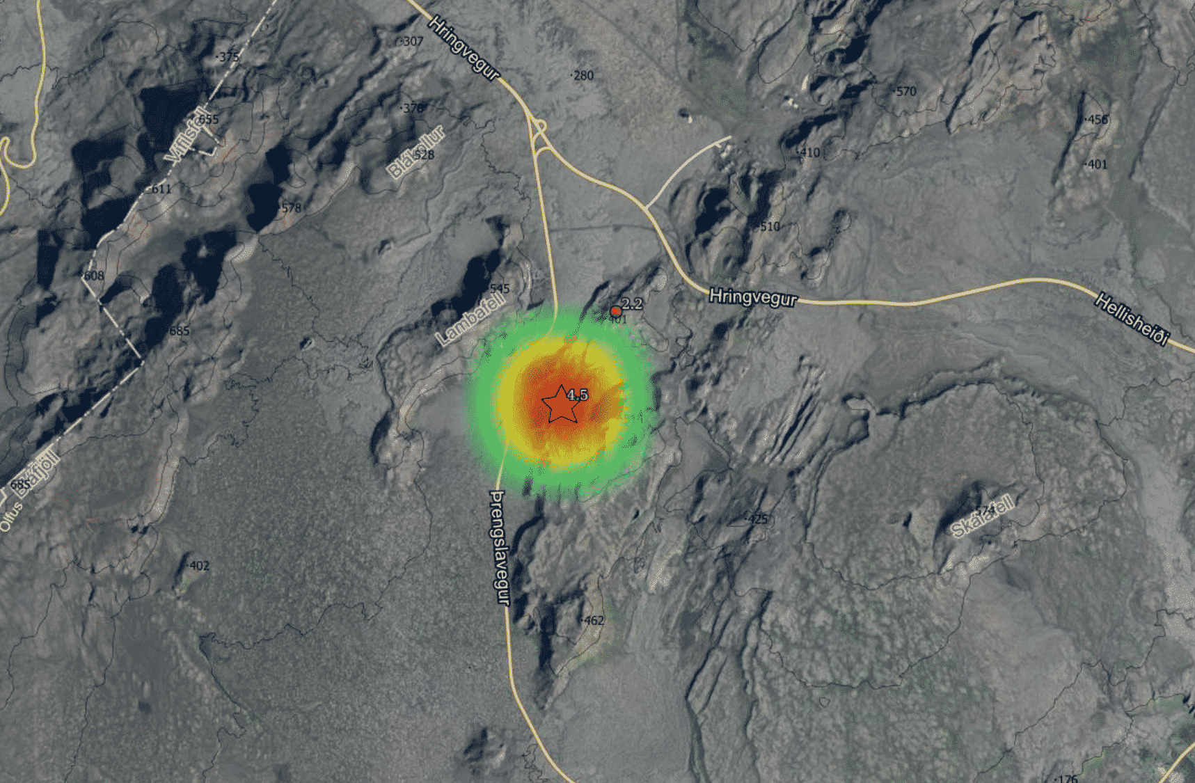 Öflugur jarðskjálfti varð klukkan 16:56 í sjálfum Þrengslunum, norðan við Stóra-Meitli. Fyrsta mat á stærð skjálftans var 4,7 en endanleg yfirfarin mæling Veðurstofunnar segir 4,8. Veðurstofan segir að búast megi við eftirskjálftavirkni í kjölfarið.