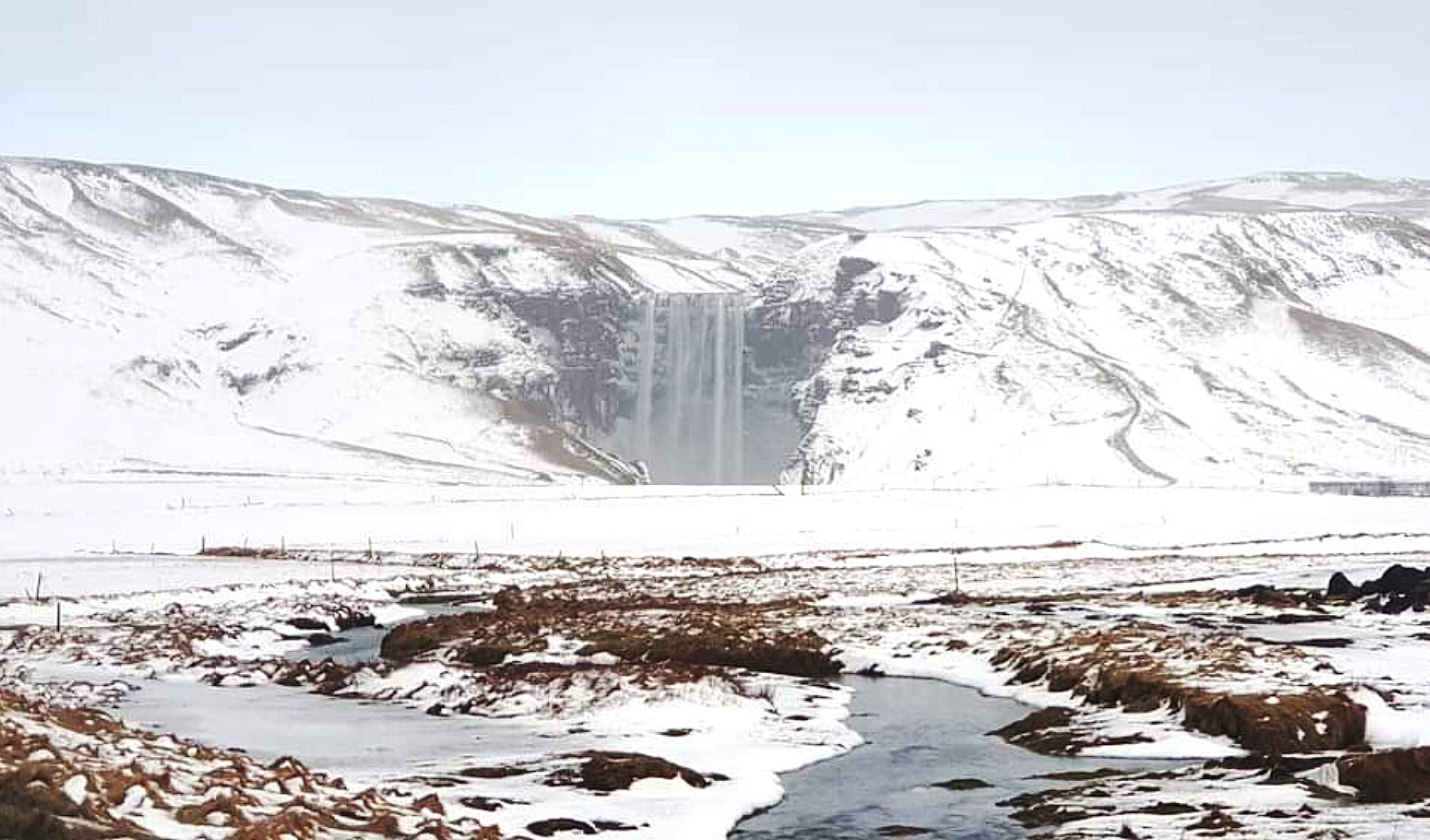 Til öryggis hefur ferðamönnum verið vísað fjær fossinum og eru lögreglumenn og björgunarsveitarmenn nú þar á svæðinu við þá vinnu.