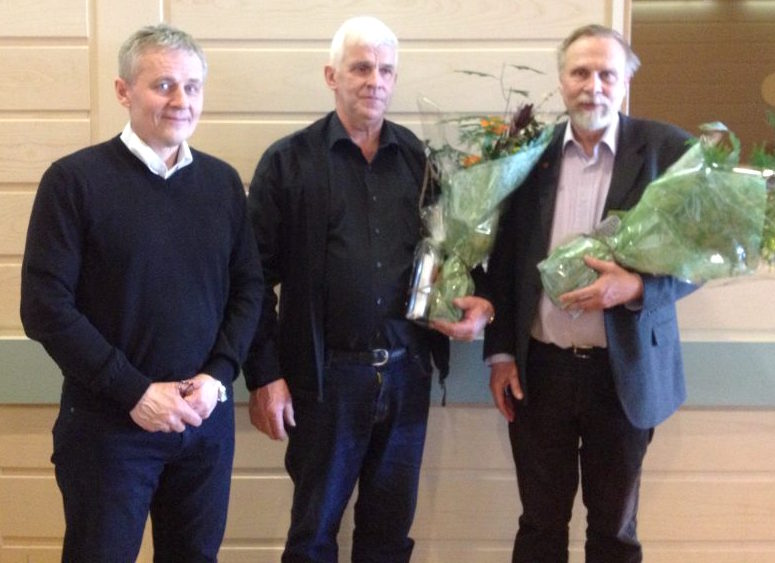 Þetta eru þeir Kristján Bjarndal Jónsson fyrir 43 ára starf sem jarðræktarráðunautur. Kristján er erlendis og gat ekki tekið við viðurkenningunni. Smári Tómasson fyrir 42 ára starf sem frjótækni og Þorsteinn Ólafsson dýralæknir fyrir 31 árs starf að frjósemi nautgripa og sauðfjár.