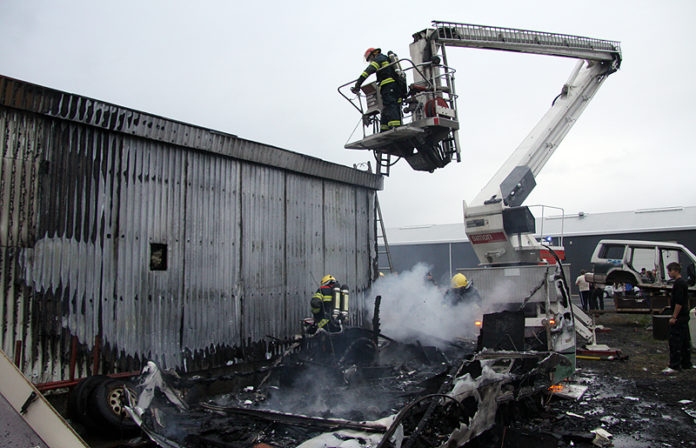 Í seilingarfjarlægð fá hjólhýsinu er geymslusvæði röraverksmiðjunnar SET með stórum plaströrastæðum. Vindátt var hins vegar hagstæð svo ekki var hætta á geymslusvæðinu.