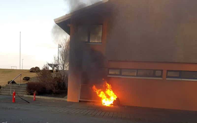 Slökkviliðsmenn Brunavarna Árnessýslu í Þorlákshöfn brugðust við útkallinu og slökktu eldinn en áður höfðu starfsmenn sveitarfélagsins og vegfarandi slegið verulega á eldinn með fimm slökkvitækjum.