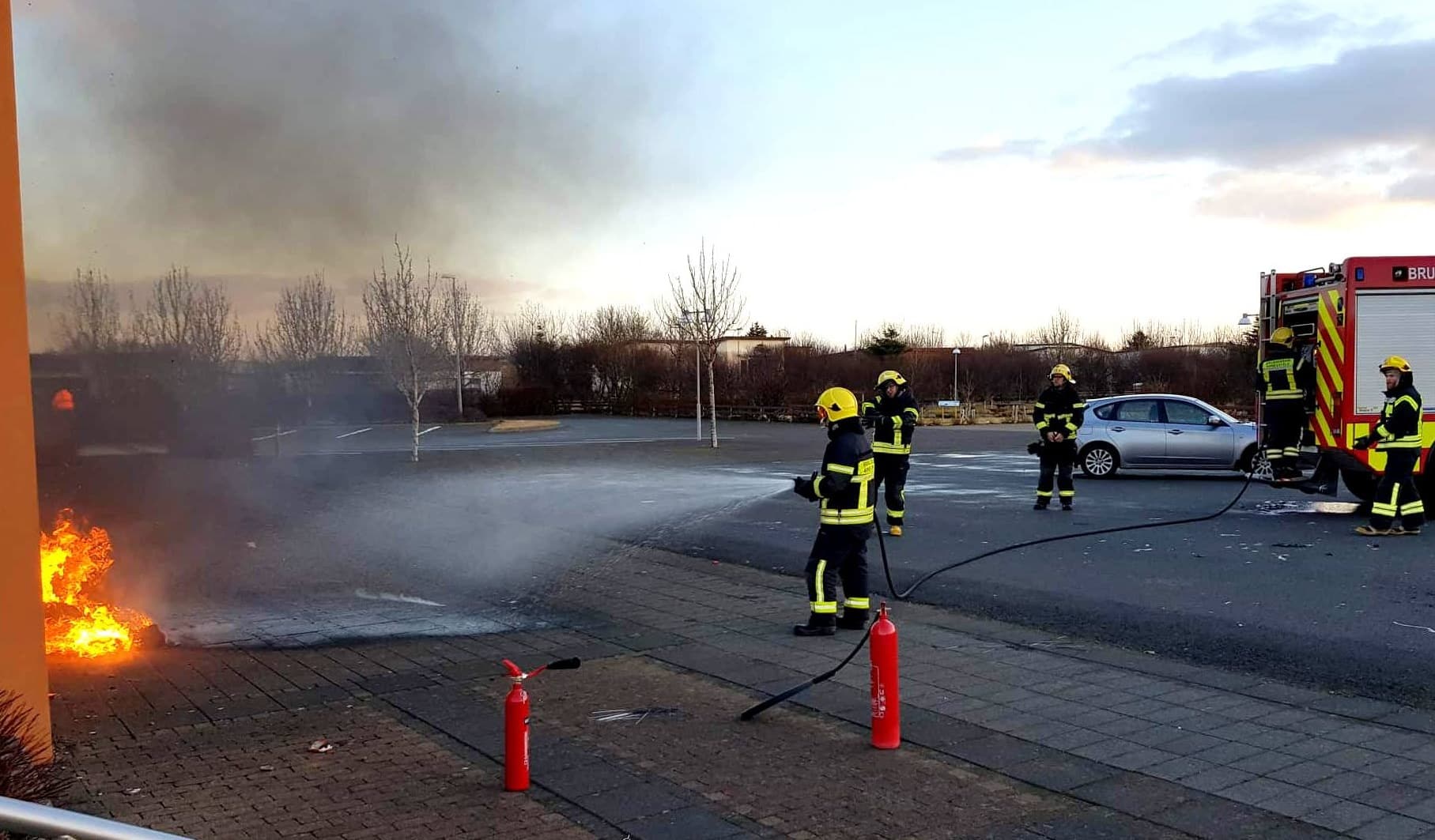 Slökkviliðsmenn Brunavarna Árnessýslu í Þorlákshöfn brugðust við útkallinu og slökktu eldinn en áður höfðu starfsmenn sveitarfélagsins og vegfarandi slegið verulega á eldinn með fimm slökkvitækjum.