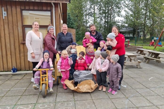 Kvenfélag Skeiðahrepps færði á dögunum leikskólanum Leikholti í Brautarholto eldstæði og fullt af fylgihlutum að gjöf.