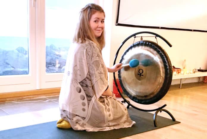 „Þegar búið er að drekka kakóið eru gerðar öndunaræfingar og svo er lagst í slökun og hugleiðslu. Ég nota jóga nidra að hluta til í slökuninni en það er stundum kallað hinn jógíski svefn, þar sem klukkutíma slökun jafnast á við fjögurra tíma svefn. Ég nota einnig gong í slökuninni en ég á svokallað Venusargong sem ég spila á. Venusargong dregur nafn sitt af því að búið er að mæla tíðni í kringum plánetuna Venus. Venus hjálpar til við að ná hvers konar jafnvægi og þá sér í lagi í samskiptum. Gongbað getur hjálpað til við streitulosun, minnkun krónískra verkja og ónæmiskerfið styrkist,“ segir Anna og bætir því við að áhrif hljóðheilunar og gong sé mikið rannsökuð um þessar mundir og jákvæðu áhrifin séu örugglega meiri en nú þegar komið í ljós.