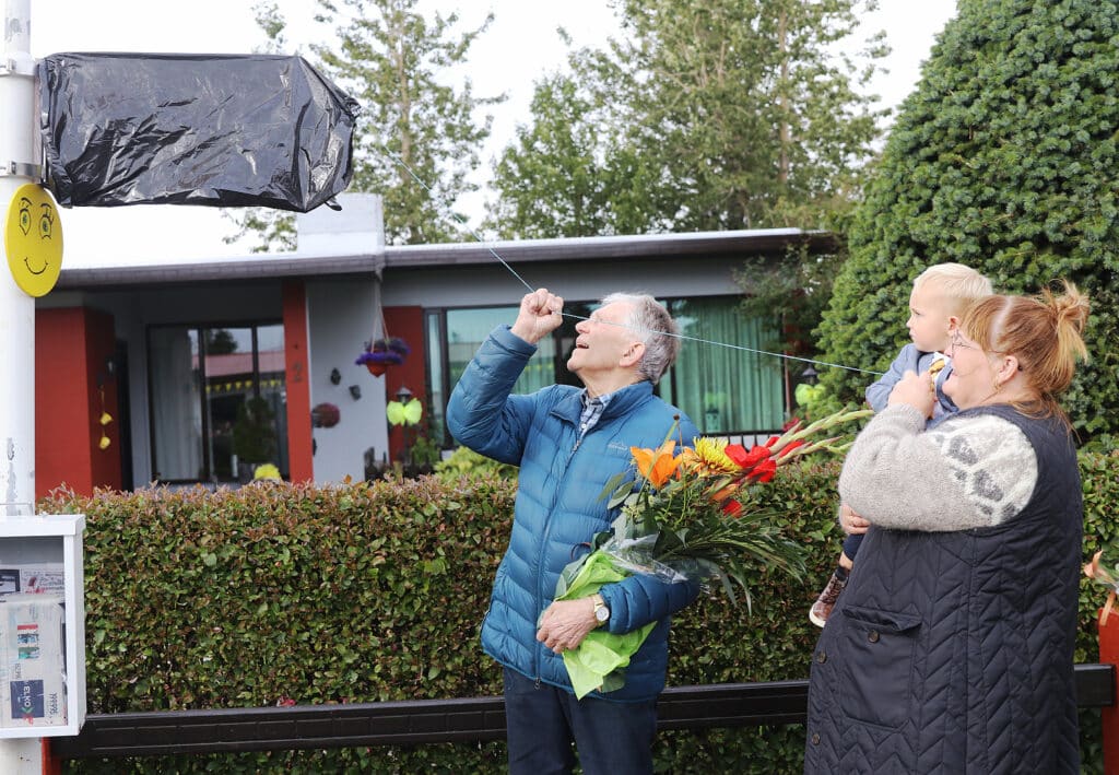 Elsti og yngsti íbúinn í götunni, þeir Jón Ólafsson fæddur 1931 og Leví Snær Pedersen fæddur 2020, fengu blómvendi og þeir afhjúpuðu síðan farandskilti sem sett hefur verið upp á ljósastaur fremst í götunni. Þetta er í annað sinn sem Lágengi hlýtur þessi verðlaun, síðast árið 2007.