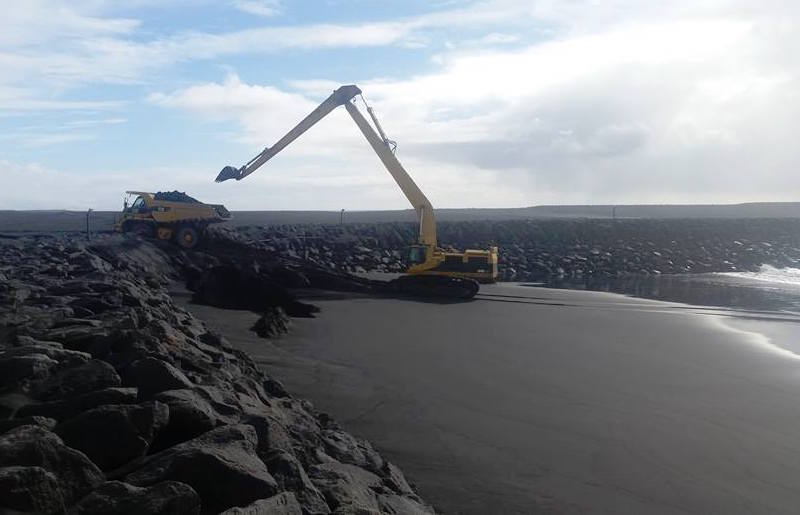 Miðað við veðurspá geti belgíska dýpkunarskipið Galilei 2000 dýpkað næst á sunnudag. Það taki skipið þrjá daga að ljúka verkinu. Fannar segir að starfsmenn Suðurverks ljúki brátt við að moka foksandi úr höfninni en vel á annan tug þúsunda rúmmetra hafi verið fluttur úr höfninni.