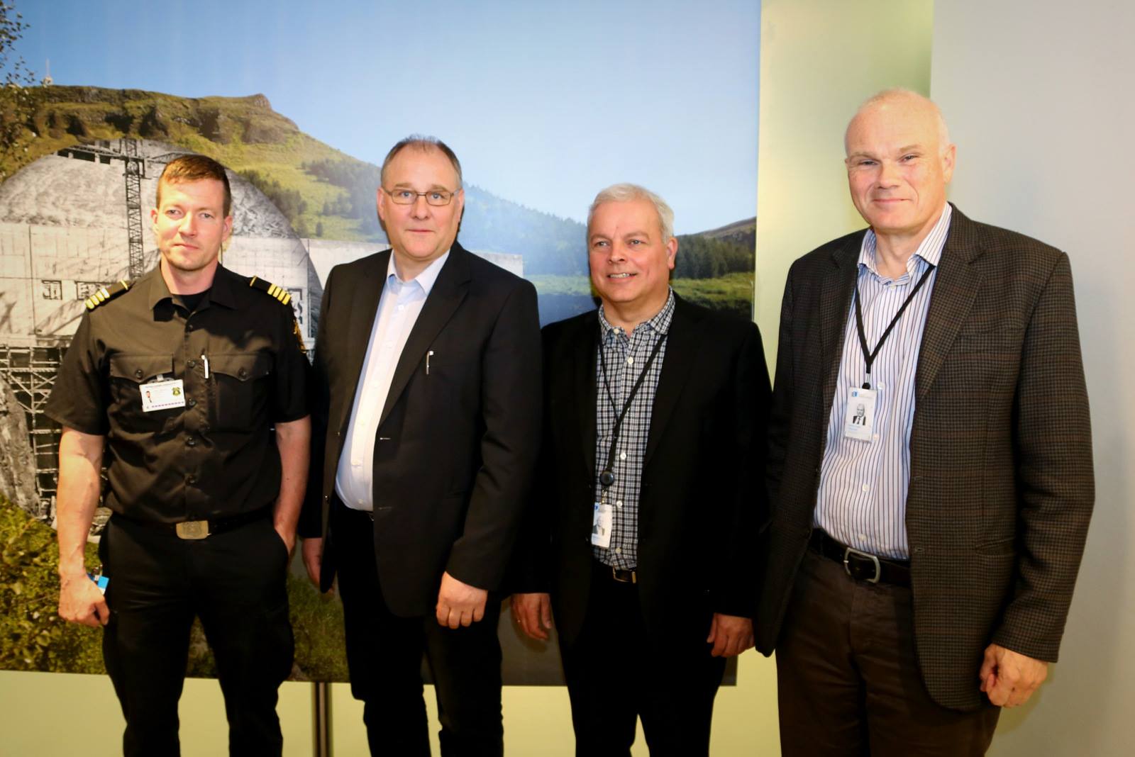 Á meðfylgjandi mynd eru Pétur Pétursson, slökkviliðsstjóri Brunavarna Árnessýslu, Ari Björn Thorarensen, formaður Héraðsnefndar Árnesinga, Einar Mathiesen, framkvæmdastjóri orkusviðs hjá Landsvirkjun og Gunnar Guðni Tómasson, framkvæmdastjóri framkvæmdasviðs hjá Landsvirkjun.