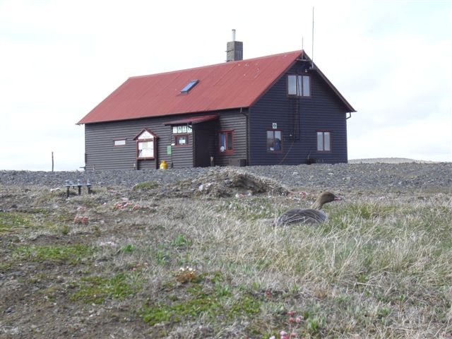 Heiðargæs hefur verpt rétt við flaggstöngina við skála Ferðafélags Íslands í Nýjadal á Sprengisandi.