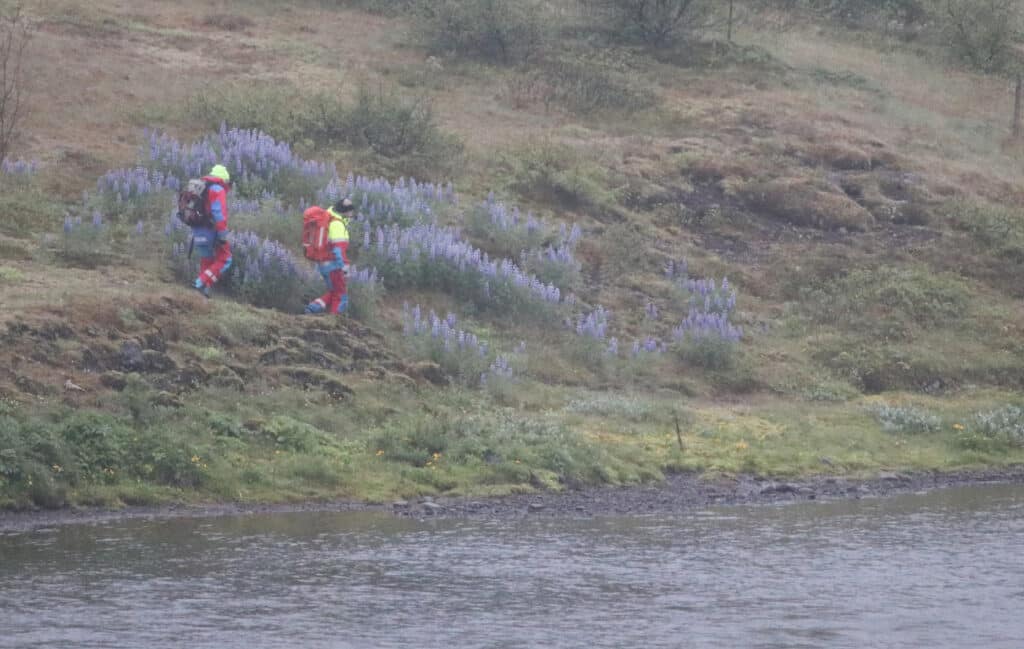 Um 50 björgunarsveitarmenn voru við leit á svæðinu, mikil þoka er í Grímsnesinu en aðstæður til leitar voru góðar.