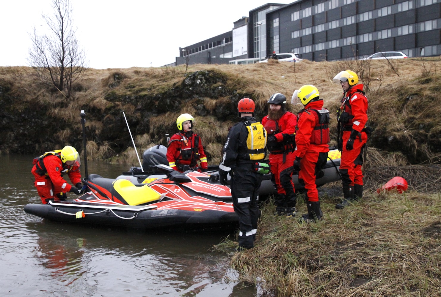 Í dag voru bakkar Ölfusár gengnir og leitað með drónum. Töluvert hefur hækkað í ánni frá því í gær og hún er mjög mórauð en ekki var farið á bátum út á ánna í dag. Skilyrði til leitar voru góð að öðru leiti.
