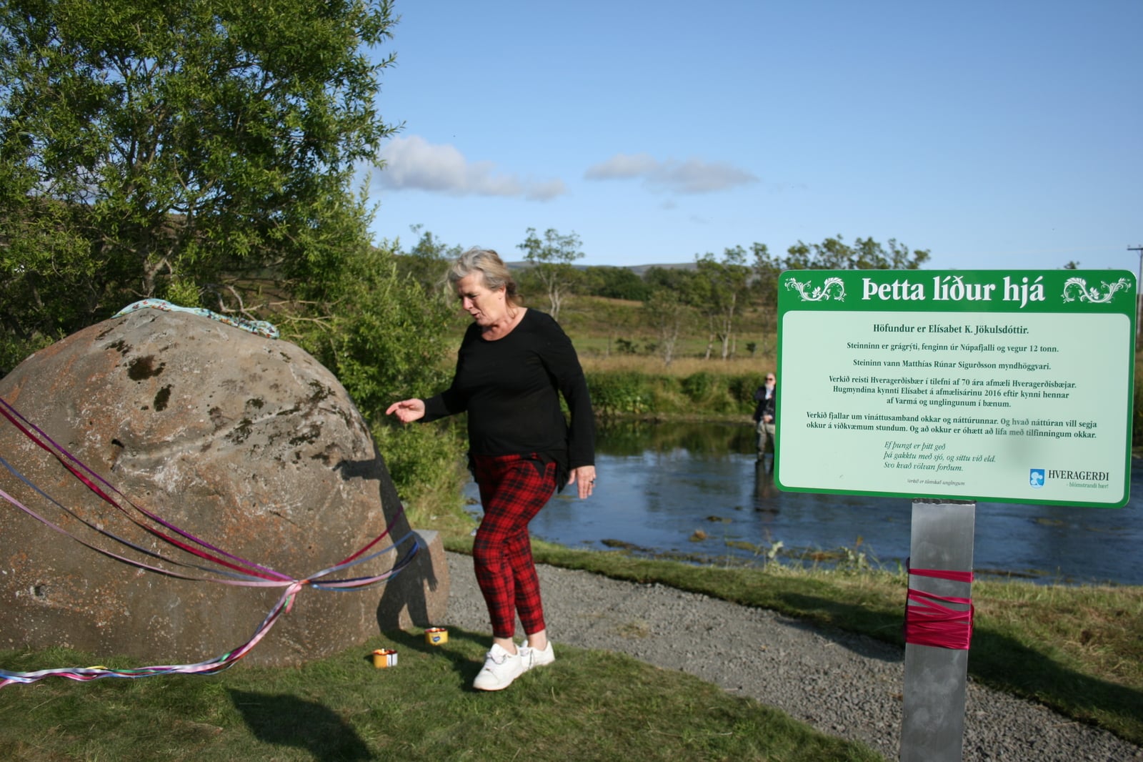 Listaverkið „Þetta líður hjá“ eftir Elísabetu K. Jökulsdóttur var afhjúpað við skemmtilega og fjölmenna athöfn við upphaf Blómstrandi daga í Hveragerði í gær.