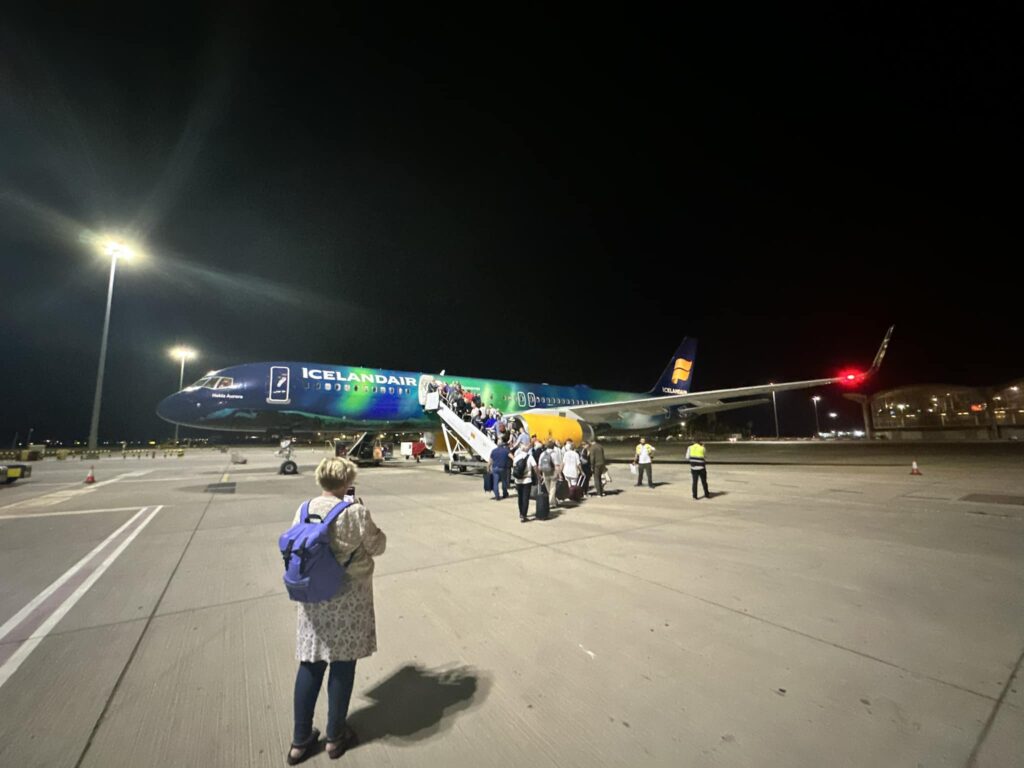 Utanríkisráðuneytið ákvað á sunnudaginn að senda farþegaflugvél til Ísraels til að sækja Íslendingana. Upphaflega stóð til að hópurinn myndi fljúga frá Tel Avív en það þótti ekki öruggt vegna sprengjuhótana. Hópurinn fór því með rútu til Jórdaníu, þar sem þau gengu yfir landamærin og skiptu um rútu sem ók til Amman. Þaðan var flogið til Rómar, þar sem Hekla Aurora, þota frá Icelandair, sótti hópinn.