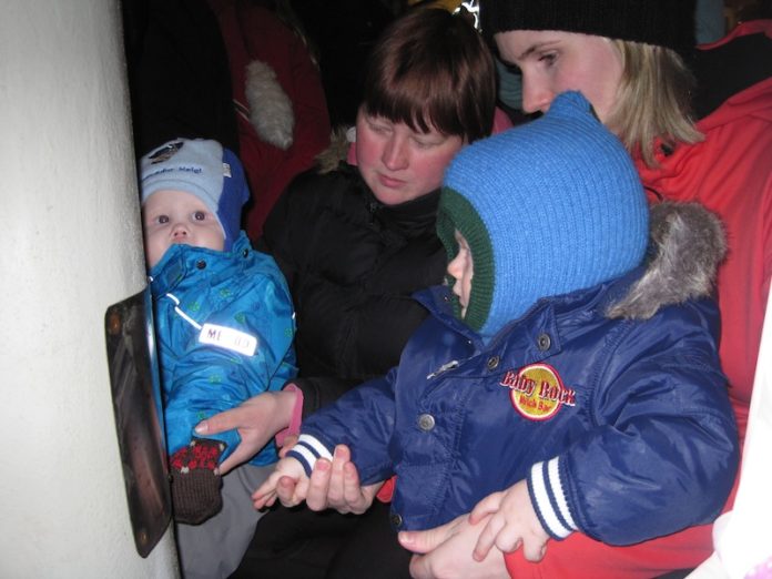 Yngstu afmælisbörn dagsins, Rósmundur Helgi Hrannarsson og Óskar Ólafur Guðbjarnarson, aðstoðuðu síðan starfsmenn Árborgar við að kveikja á jólaljósunum.