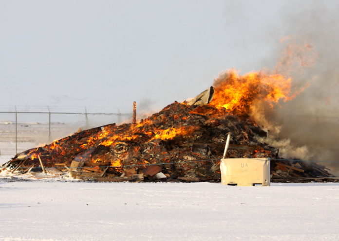 „Það kom ekki annað til greina en að brenna köstinn, það var búið að bleyta upp í honum með olíu og efniviðurinn er blandaður svo að það var ekki hægt að koma þessu í förgun,“ sagði Óðinn K. Andersen, starfsmaður áhaldahúss Árborgar, í samtali við sunnlenska.is.