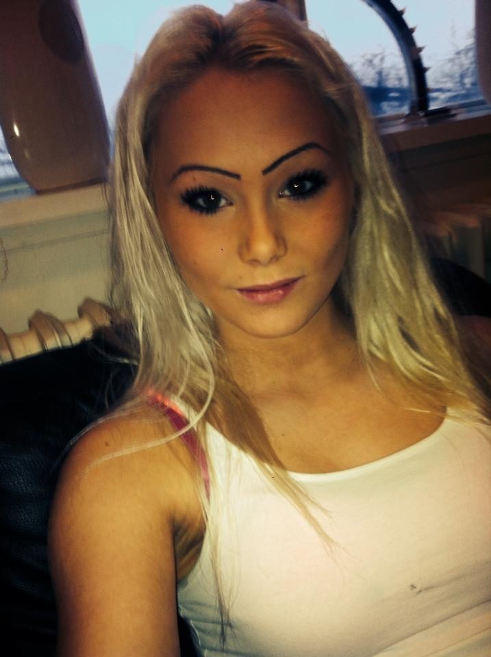 Brynja er um 155 sm á hæð grönn, bláeyg með sítt aflitað hár.
