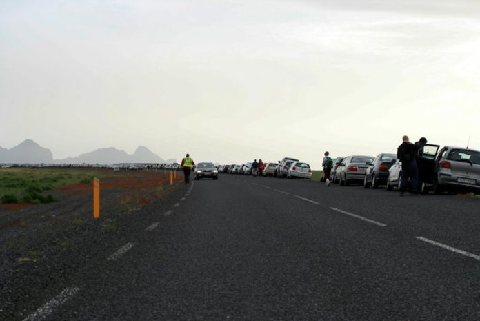 Lögreglan á Hvolsvelli hefur haft eftirlit með umferð við Landeyjahöfn í nótt og í morgun. Fyrsta ferð Herjólfs frá Eyjum kom í Landeyjahöfn um klukkan þrjú í nótt.