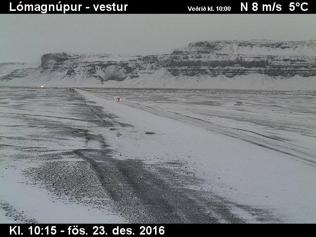 Vegagerðin er nú að loka Suðurlandsvegi frá Lómagnúp í vestri að Jökulsárlóni í austri. Þar er nú mikil hálka og hvasst.