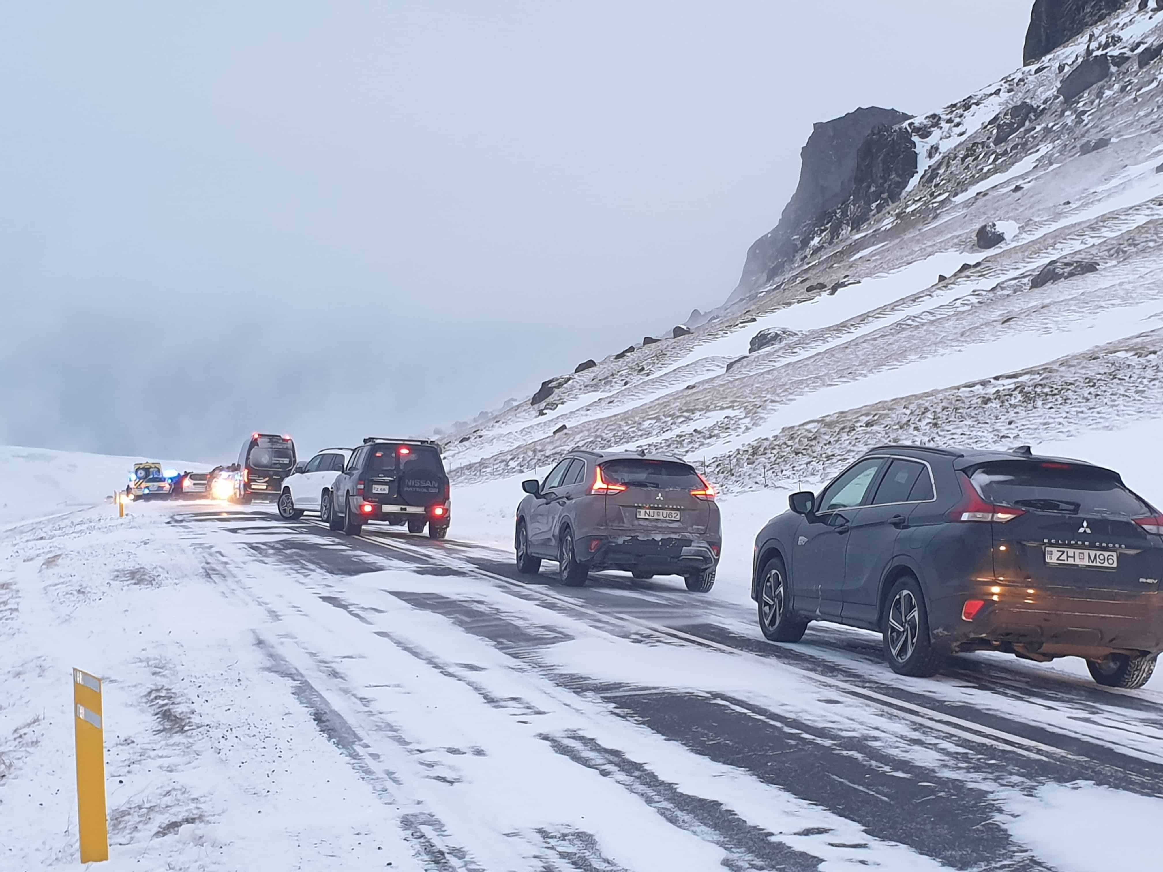 Langar bílaraðir mynduðust beggja vegna slysstaðarins en vegurinn hefur verið opnaður á ný. Viðbragðsaðilar eru enn á vettvangi og eru vegfarendur beðnir um að sýna þeim tillitssemi. Slæmt veður er á vettvangi og færð tekin að spillast.