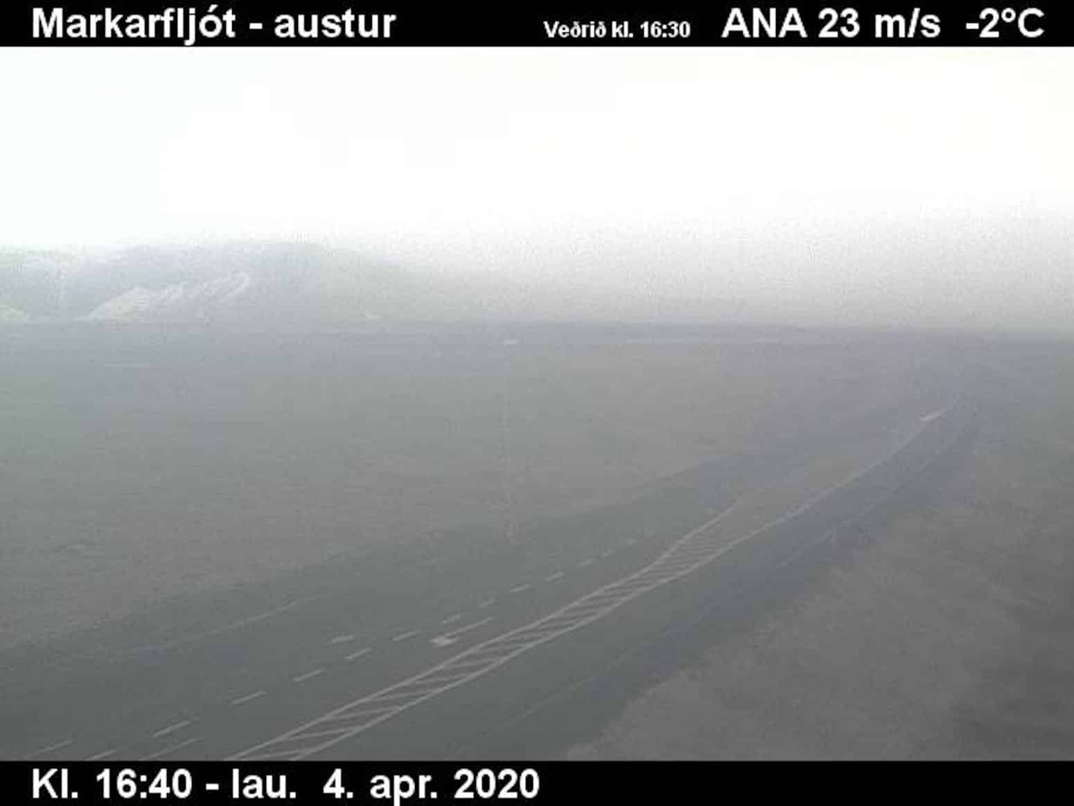 Suðurlandsvegi hefur verið lokað milli Markarfljóts og Víkur vegna veðurs. Appelsínugul viðvörun er í gildi á Suðurlandi.