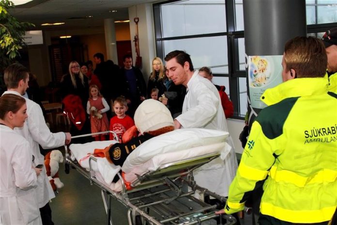 Það var vitlaust að gera á bangsaspítalanum á Heilbrigðisstofnun Suðurlands á Selfossi á laugardaginn. Meðal þeirra sem þurftu aðhlynningu var Lúlli löggubangsi en hann kom í lögreglufylgd í sjúkrabíl.