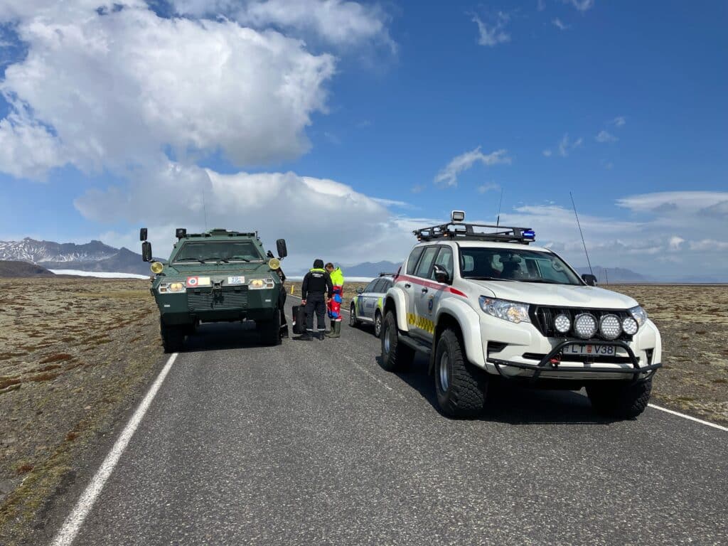Björgunarsveitin Kári í Öræfum, og Björgunarfélag Hornafjarðar komu að aðgerðum í morgun, þar sem þjóðveginum var lokað frá Skaftafelli að vestan og Jökulsárlóni að austan, meðan mesta hvassviðrið gekk yfir. Um hádegið var vind tekin að lægja.