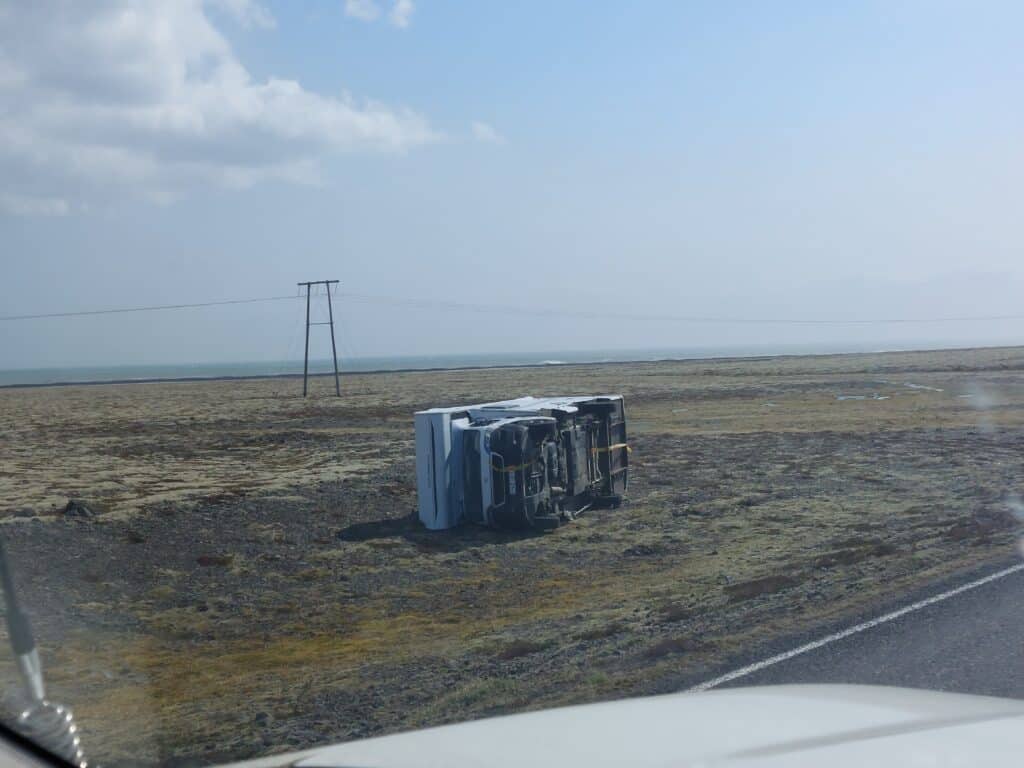 Mikið hvassviðri gerði í Öræfum í morgun, upp úr klukkan 10, og fuku allmargir bílar út af veginum, og ferðafólk var almennt í vandræðum. Sérstaklega hvasst var við Fjallsárlón, þar sem varla var stætt.