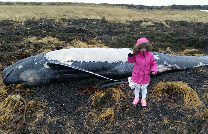 Hvalurinn er um það bil fjögurra metra langur og vegur líklega hátt í tvo tonn. sunnlenska.is/Ómar Vignir Helgason