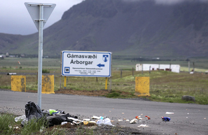 Mávahópur tók það síðan að sér að opna pokana og dreifa innihaldinu um nágrennið þannig að aðkoman var ekki fögur þegar starfsmenn gámasvæðisins komu til vinnu í morgun.