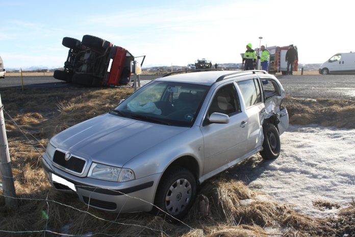 Þá varð harður árekstur varð á Gaulverjabæjarveig vestan Stokkseyrar seint á þriðjudagskvöld í síðustu viku. Ölvaður ökumaður ók þar á kyrrstæða bifreið sem hafði verið yfirgefin þannig að hún stóð hálf inn á akbrautinni. Báðar bifreiðarnar enduðu utan vegar.