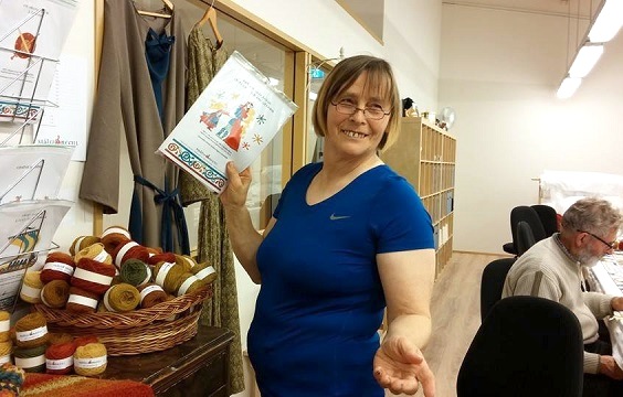 Svo skemmtilega vildi til að það var Helga Sigurðardóttir úr Fljótshlíðinni sem ritaði nafn sitt númer 5000 en Helga hefur verið einn allra ötulasti saumarinn síðan byrjað var að sauma og hefur hún komið á hverju þriðjudagskvöldi síðan í febrúar 2013. Helga fékk að launum handavinnupakka og valdi hún sér pakka með mynd af Hallgerði, Glúmi og Þorgerði.