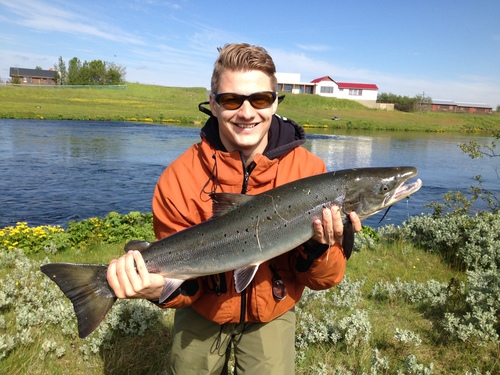 Allir laxarnir fengust á flugu nema einn sem fékkst á spún.