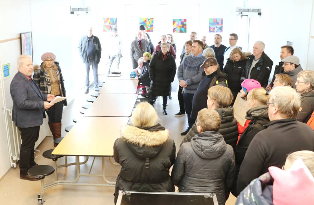 „Vonandi verður það styttri tími en það er ljóst á útboðinu sem farið var í [á færanlegu kennslustofunum] að bæjarfulltrúar hafa verið að hlusta, enda hafa raddirnar verið mjög háværar hér á Stokkseyri og Eyrarbakka, og bæjarfulltrúar vilja sem fyrsta skref leysa þennan bráðabirgðavanda með lausn á Eyrarbakka. Enn hefur ekki verið tekin varanleg ákvörðun um framtíðarlausn en það yrði þá vinna nýrrar bæjarstjórnar að leiða,“ sagði Gísli Halldór og virtust viðstaddir nokkuð ánægðir með svör hans.