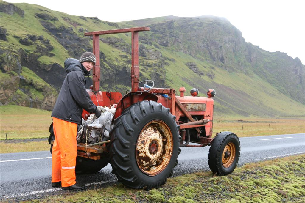 Á myndinni sem fylgir þessari frétt er Eiríkur Vilhelm Sigurðarson við fýlaveiðar á gömlum Farmall, árgerð 1965, sem afi hans, Einar Þorsteinsson fyrrum ráðunautur í Sólheimahjáleigu notaði við ýmis bústörf í áratugi.