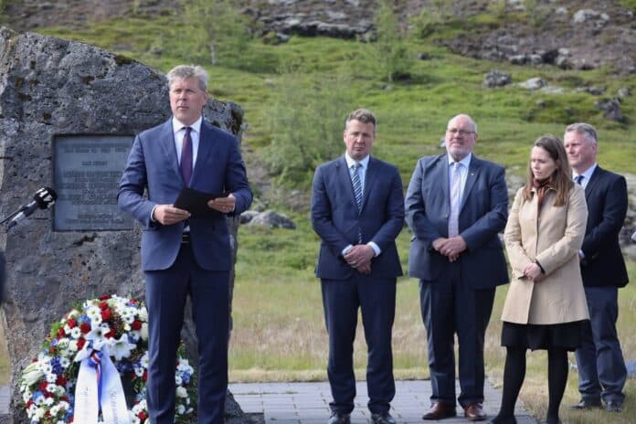 Katrín Jakobsdóttir, forsætisráðherra, lagði af þessu tilefni blómsveig að minningarsteini sem stendur þar sem húsið stóð en forseta Íslands, ríkisstjórn og þingmönnum var boðið til athafnarinnar auk afkomenda forsætisráðherrahjónanna.