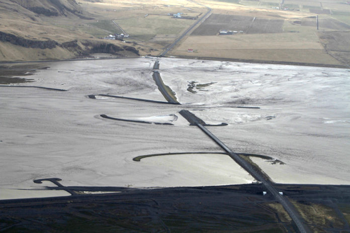 Mjólkurbílar frá MS fóru á sérstakri undanþágu yfir gömlu Markarfljótsbrúna á tíunda tímanum í morgun og eru að ná í mjólk á bæjunum undir Eyjafjöllum.