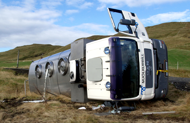 Í mjólkurtankinum voru um 10.000 lítrar af mjólk, eða rúmlega hálffullur tankur. Tankurinn skemmdist ekki, svo að lítið af mjólk fór til spillis.
