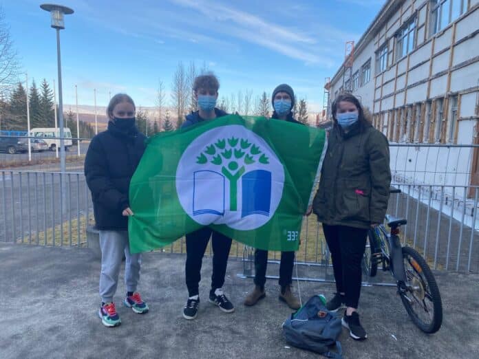 Í gær fékk Menntaskólinn að Laugarvatni Grænfánann í fimmta skipti, við hátíðlega en fámenna athöfn fyrir utan skólann.