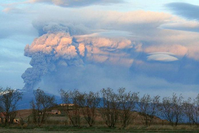 Gosvirknin í Eyjafjallajökli var áfram stöðug í dag. Jarðskjálftahrina hófst rétt fyrir miðnætti og gaf í mökkinn í kjölfar skjálftanna.