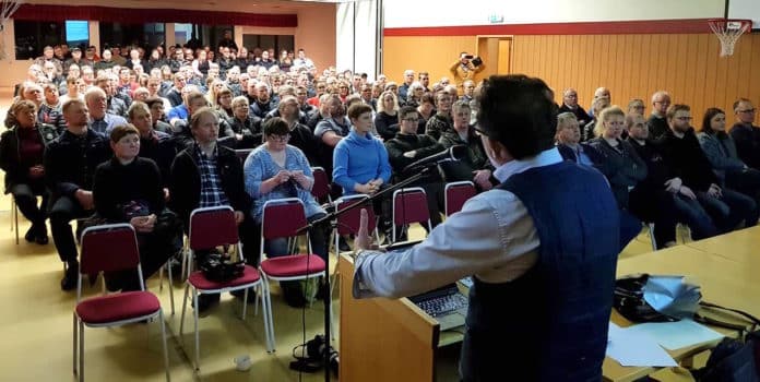 Fjölmenni var á opnum fundi sem Kristján Þór Júlíusson, sjávarútvegs- og landbúnaðarráðherra, boðaði til í félagsheimilinu Þingborg í Flóahreppi í kvöld til að ræða frumvarp um innflutning á ófrystu kjöti og stöðu landbúnaðarins almennt. Formennirnir sendu áskorunina út í kjölfar fundarins.